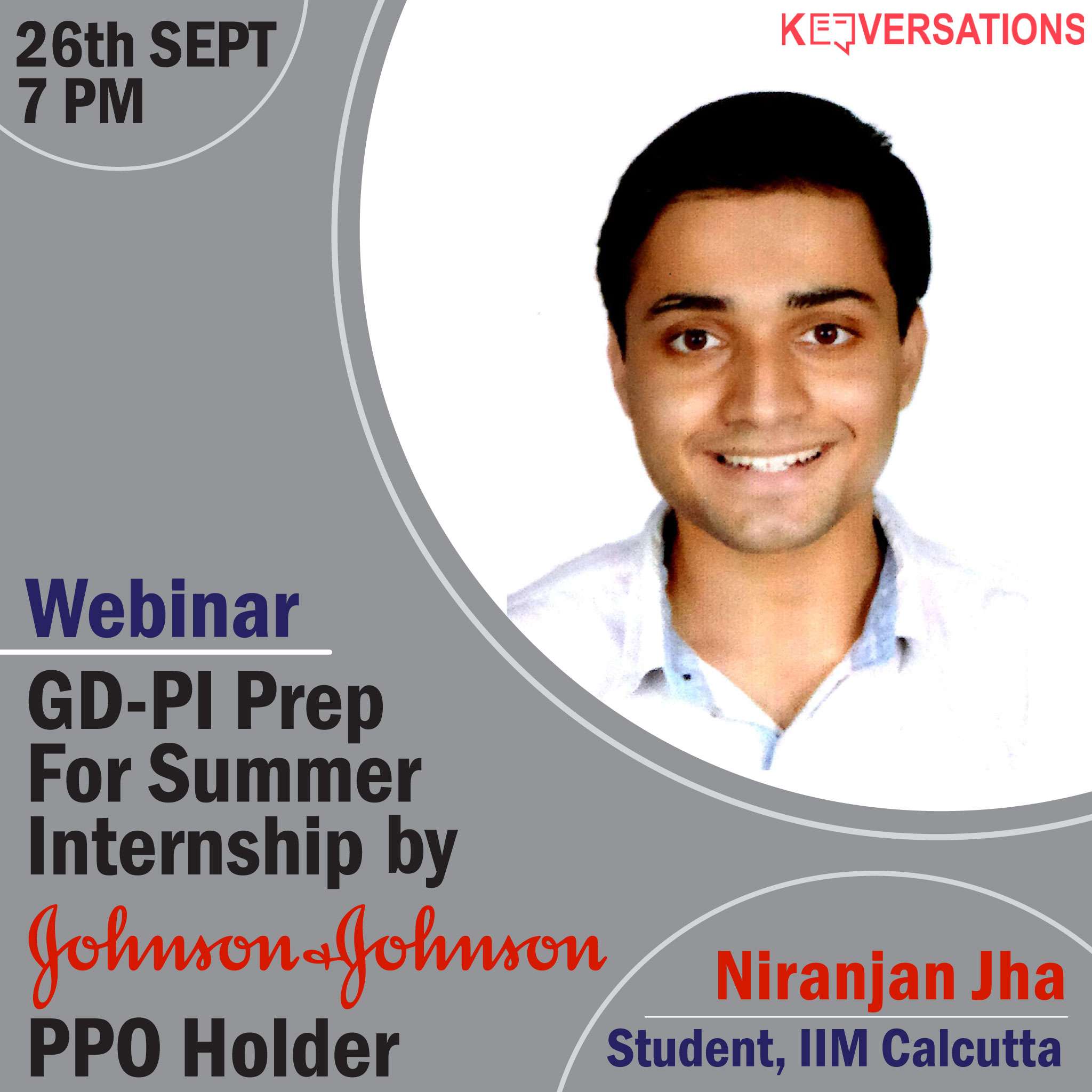 In this free LIVE webinar tonight at 7 PM, Niranjan Jha - Intern & PPO Holder at Johnson And Johnson, discusses his experience. Learn how Niranjan, an IIM C student, cracked his GD - PI rounds and the internship interview with Johnson And Johnson.